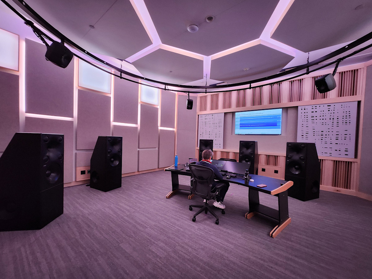 At the heart of the campus is the Olivier Music Barn, a 140-seat concert hall designed for warmth and connection. Outfitted with an Avid S6 console and a 7.1.4 Genelec system featuring seven 8351B Smart Active Monitors for LCR, side and rear surrounds, four 8240A height channels and a 7270A subwoofer, the control room handles both live concert recording and post-production. Audio is captured simultaneously in DXD 384 kHz via Merging Technologies Pyramix and Pro Tools 96 kHz (as a backup), preserving ultra-high-resolution masters of every performance.